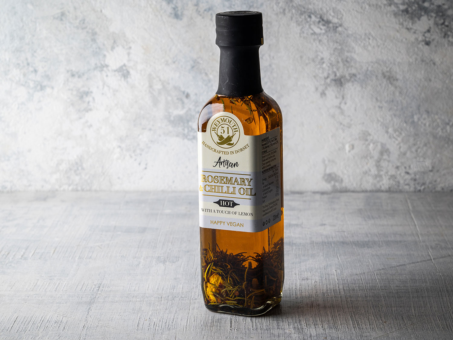 Extra Virgin Cold Pressed Rapeseed oil, Dried Dorset Naga Chilli 2%, Rosemary 1%, Lemon